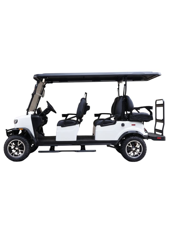 The Moonlight White TEKO® EV TROPHY PLUS offers superior balance thanks to its low center of gravity and precision steering geometry. Independent suspension absorbs bumps, delivering a car-like feel on roads, paved paths, or uneven trails. Powered by a 5kW AC motor paired with a 51.2V lithium battery, the Trophy Plus delivers a range of up to 40 miles per charge. Thanks to its 3.5-hour fast charging system, downtime is minimal, keeping you and your family on the move more often. With its compact yet very spacious 6-seat configuration 4+2, it’s built for comfort on short commutes and smooth operation across campuses or gated communities.